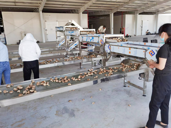 是利用振動(dòng)電機(jī)為激振源,通過(guò)振動(dòng)電機(jī)的振動(dòng)力使蘑菇在篩面上被拋起,跳躍式向前作直線(xiàn)運(yùn)動(dòng),以合理匹配不同孔徑篩網(wǎng)達(dá)到篩分的目的,適用于香菇、鮮菇、干菇等食用菌的大小分選。
